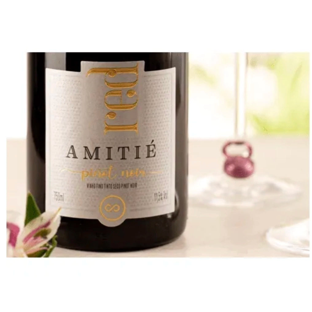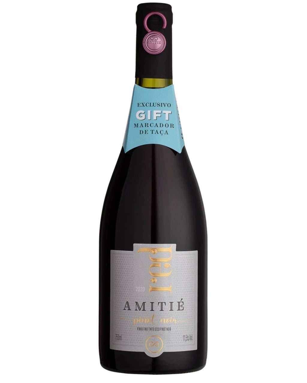 Cada garrafa acompanha um charmoso marcador de taças, tornando especial cada brindis com Amitié. Premiado internacionalmente, o Amitié Pinot Noir conquistou medalhas de bronze no Decanter World Wine Awards 2021 e 2022, além do IWSC de Londres em 2022, reafirmando sua qualidade e elegância.